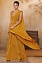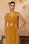 Featuring a golden yellow pre-draped saree in crepe base. It is paired with a blouse having sequins, cutdana, zari and bead embroidery. Accentuate it with statement earrings and elegant heels for a stylish ensemble, ideal for festive gatherings or haldi ceremonies.