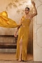 Golden Yellow Crepe Sequins Embroidered Saree Set