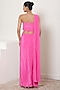 Featuring a hot pink draped saree in crepe base with cutdana, beads, sequins and resham hand embroidery. It is paired with a blouse. Accentuate it with kundan polki jewellery, a potli bag and block heels for a graceful look. Perfect for a cocktail soiree, sangeet or engagement ceremony.
