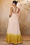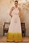 Featuring an ivory and yellow jumpsuit in satin organza and tulle base with beads, sequins, cutdana and resham work. Accentuate it with kundan polki jewellery, a potli bag and block heels for a graceful look. Perfect for a cocktail soiree.