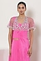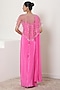 Featuring a pink saree in crepe and tulle base. It is paired with a blouse and a cape having thread, dabka, nalki, sequins and nakshi embroidery. Accentuate it with statement earrings and elegant heels for a stylish ensemble, ideal for festive gatherings or sangeet ceremonies.