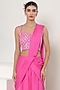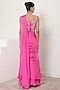 Featuring a pink saree in satin organza base. It is paired with a pure raw silk blouse having resham, dabka, sequins and nakshi hand embroidery. Accentuate it with kundan polki jewellery, a potli bag and block heels for a graceful look. Perfect for a cocktail soiree, sangeet or engagement ceremony.