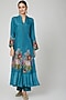 Featuring a blue anarkali in dupion silk and raw silk base with floral embroidery. It is paired with matching pants.