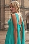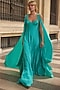 Featuring an aqua green A-line gown in satin base with pearl embellishment. it is paired with a cape-style drape. Accentuate it with crystal earrings and stilettos for a stylish ensemble, ideal for cocktail evenings or red-carpet events.