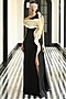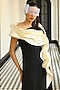 Featuring a black and off-white asymmetric gown in crepe and polyester base with ruffle waves and thigh-high slit detail. Accentuate the gown with gold jewellery, embellished heels and a clutch bag for a complete look, perfect wear for a red carpet event, cocktail or an evening party.