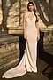 Featuring a cream-pink gown in crepe base with tonal embroidery, back trail and halter detailing. Accentuate the gown with zircon jewellery, embellished heels and a clutch bag for a complete look, Perfect wear for a red carpet event, cocktail or an evening party.
