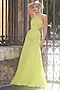 Featuring a light green structured gown in chiffon base with a halter neckline, slim shoulder straps and side cut-out detailing. Accentuate it with crystal earrings and stilettos for a stylish ensemble, ideal for cocktail evenings or red-carpet events.