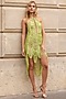 Lime Green Fringe Threadwork Asymmetrical Dress