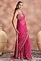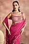 Featuring a magenta saree in shimmer georgette base with embroidery. It is paired with an embroidered blouse and an underskirt. Accentuate it with polki earrings and heels for a festive occasion or sangeet ceremony.