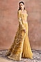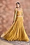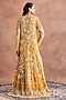 Featuring a mustard gold jacket in silk chanderi and net base with embroidery. It is paired with a blouse and skirt. Accentuate it with statement earrings and heels for evening or cocktail parties.