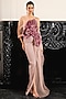 Featuring a primrose pink one-shoulder gown in pleated tulle, taffeta and polyester base. Accentuate the gown with diamond jewellery, embellished heels and a clutch bag for a complete look, perfect wear for a red carpet event, cocktail or an evening party.
