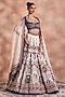 Featuring a royal blue lehenga in chanderi silk base with embroidery. It is paired with an embroidered blouse and a dupatta. Accentuate with heavy jewellery set and heels for wedding, cocktail or engagement ceremonies.