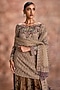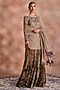 Featuring a sand gold kurta in tissue chanderi and velvet base with embroidery. It is paired with printed flared pants and a dupatta. Accentuate it with statement earrings and heels for a festive occasion.