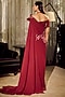 Featuring a wine draped gown in crepe base with wrapped side slit and cape style trail. Accentuate the designer gown with swarovski or zircon necklace, embellished heels and a clutch for red carpet events, gala dinners or cocktail parties.