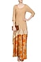Featuring a beige double layer asymmetric tunic in double georgette base with dori embroidery on the flare and printed satin underlay.