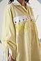 Featuring a lemon yellow shirt dress in poplin base with mix print, rivet detailed pocket flaps and adjustable drawstring sleeves. Accentuate it with statement earrings and heels for a casual wear.