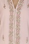Featuring a pink straight jacket in chanderi silk with heavy floral hand embroidery. It is paired with white flared skirt in fancy fabric.