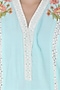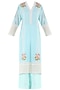 Featuring a powder blue kurta in silk chanderi base with thread embroidered motifs and lace detailing. It is paired with matching palazzo pants and a pink chiffon dupatta.