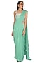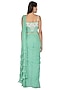 Featuring a sea green draped saree in georgette base with frills. It is paired with a matching blouse having 3D embroidery.