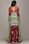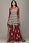 Featuring a maroon gharara in georgette base with thread, sequins, crystals, and pearls embroidery. It is paired with a contrasting kurta and a net dupatta.