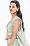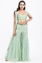 Featuring a pista green blouse in silk base with tie-up detail. It is paired with tulle embellished pants, a cape, and a leather belt. Accentuate it with statement jewellery and heels for a festive occasion.