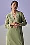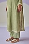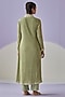 Featuring a green kurta in crinkled fabric base with dabka and beadwork. It is paired with dull bosky printed trousers. Perfect wear for festive gatherings.