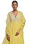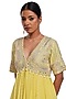 Featuring a lime green front open anarkali in bemberg organza base with resham, pearl and mirror embroidery. It is paired with printed and embroidered straight trousers, including a silk organza dupatta. Accentuate it with dangler earrings and heels for a festive look.
