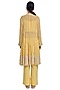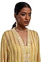 Featuring a lime green kurta in georgette and cotton satin base with block print, resham, mirror and pearl embroidery. It is paired with an inner, striped block printed straight fit trouser and a silk organza embroidered dupatta. Accentuate with statement earrings and heels for a festive occasion.