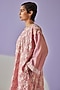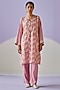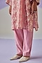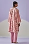 Featuring a pink anti-fit kurta in cotton silk base with dabka and beadwork, including block print. It is paired with dull bosky printed narrow trousers. Perfect wear for casual wear or festive gatherings.