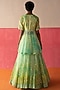 Featuring a yellow and green shaded lehenga in organza base with block print, including mirror and sequins embroidery. It is paired with a matching kurta and a dupatta having mirror and sequins work.