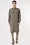 Featuring an olive green pathani kurta in self textured fabric base with a zip feature. This contains only one piece.