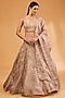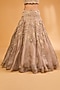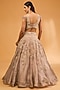 Beige Satin Organza 3D Floral & Cutdana Work Lehenga Set