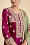 Featuring a berry magenta kurta in spun silk base with gota cheed work. It is paired with palazzo pants and a dupatta. Accentuate it with statement earrings and block heels for weddings, family gatherings or celebratory occasions.