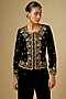 Featuring a black jacket in velvet base with zardosi work. Style with pants and embellished heels for a graceful look, perfect for festive gatherings or after party.