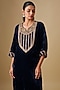 Featuring a navy blue kurta in velvet base with zardosi work. It is paired with pants. Accentuate it with polki jewellery and heels for festive occasions or pooja ceremony.
