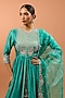 Featuring a blue anarkali in banarasi chanderi base with zardosi work. It is paired with pants and an organza dupatta. Accentuate with statement earrings and heels for a festive occasion.
