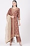 Featuring a brown kurta in pure spun silk base with hand embroidery. It is paired with matching pants and a pure organza scalloped dupatta.