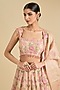 Featuring a champagne lehenga in organza base with resham, sequins and cutdana work. It is paired with an embroidered blouse and a dupatta. Accentuate it with jewellery and heels for wedding ceremonies.