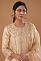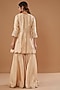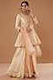 Featuring a champagne short kalidar kurta in pure silk base with zardosi work. It is paired with gharara pants and a pure organza shaded dupatta. Style this designer gharara set with a pair of heels and chandbali earrings for any festive occasion or an engagement ceremony.