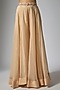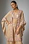 Featuring a champagne round cape in spun silk and organza base with floral jaal work. It is paired with sharara pants and a bustier. Style it with statement jewellery and heels for a refined ethnic look. Perfect for sangeet nights or weddings.