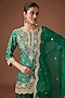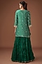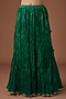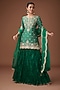 Featuring an emerald green bandhej kurta in pure spun silk base with mukaish and marori work. It is paired with a crushed skirt and a dupatta. Accentuate it with statement earrings and heels for a mehendi or wedding ceremony.