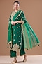 Featuring an emerald green kurta in pure spun silk base with hand embroidery. It is paired with matching pants and a pure organza dupatta.