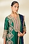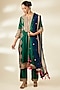 Featuring an emerald green kurta in spun silk base with marori and gota work. It is paired with pants and a dupatta. Accentuate it with polki jewellery, a clutch and embellished heels for a wedding or mehendi ceremony.