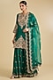 Featuring an emerald green kurta in spun silk and organza base with marori and sequins work. It is paired with embroidered sharara pants and a dupatta. Accentuate it with jewellery and heels for festive occasions or a wedding ceremony.