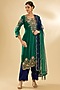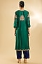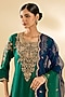Featuring an emerald green kurta in spun silk base with marori and sequins work. It is paired with pants and a dupatta. Accentuate it with kundan polki jewellery and embellished heels for a mehendi or wedding ceremonies.