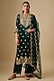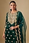 Featuring an emerald green kurta in velvet base with zardosi and pearl embroidery. It is paired with pants and a dupatta. Accentuate it with polki jewellery and heels for festive occasions or mehendi ceremony.