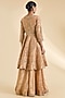 Featuring a gold peplum kurta in tissue base with gota cheed work. It is paired with sharara pants and a dupatta. Accentuate it with gold jhumkas and block heels for weddings, family gatherings or celebratory occasions.