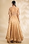 Featuring a golden kurta in tissue base. It is paired with sharara pants and a dupatta. Accentuate it with statement jewellery and heels for a festive occasion, wedding, sangeet or engagement ceremony.