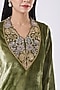 Featuring a green kurta in silk velvet base with hand embroidery. It is paired with contrasting satin pants.