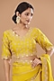Featuring a greenish-yellow shaded saree in satin organza base with gota and marori work. It is paired with a matching pure spun silk blouse having hand embroidery.